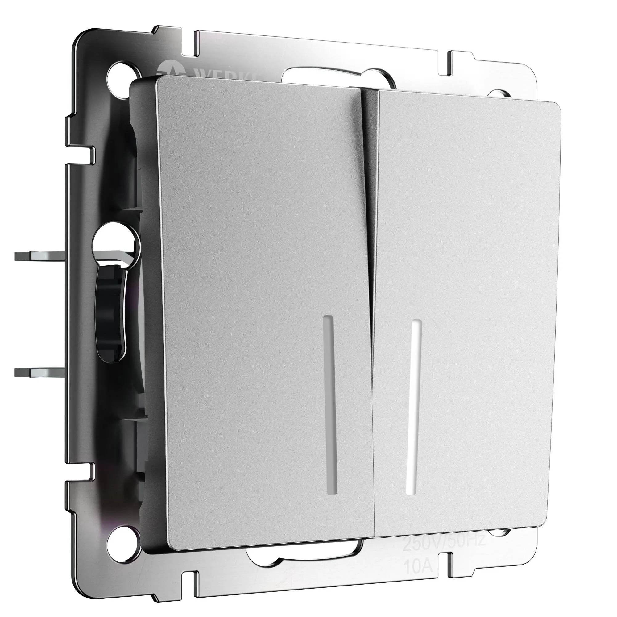 Двухклавишный выключатель с подсветкой Werkel серебряный матовый — удобство в темноте, стиль в деталях