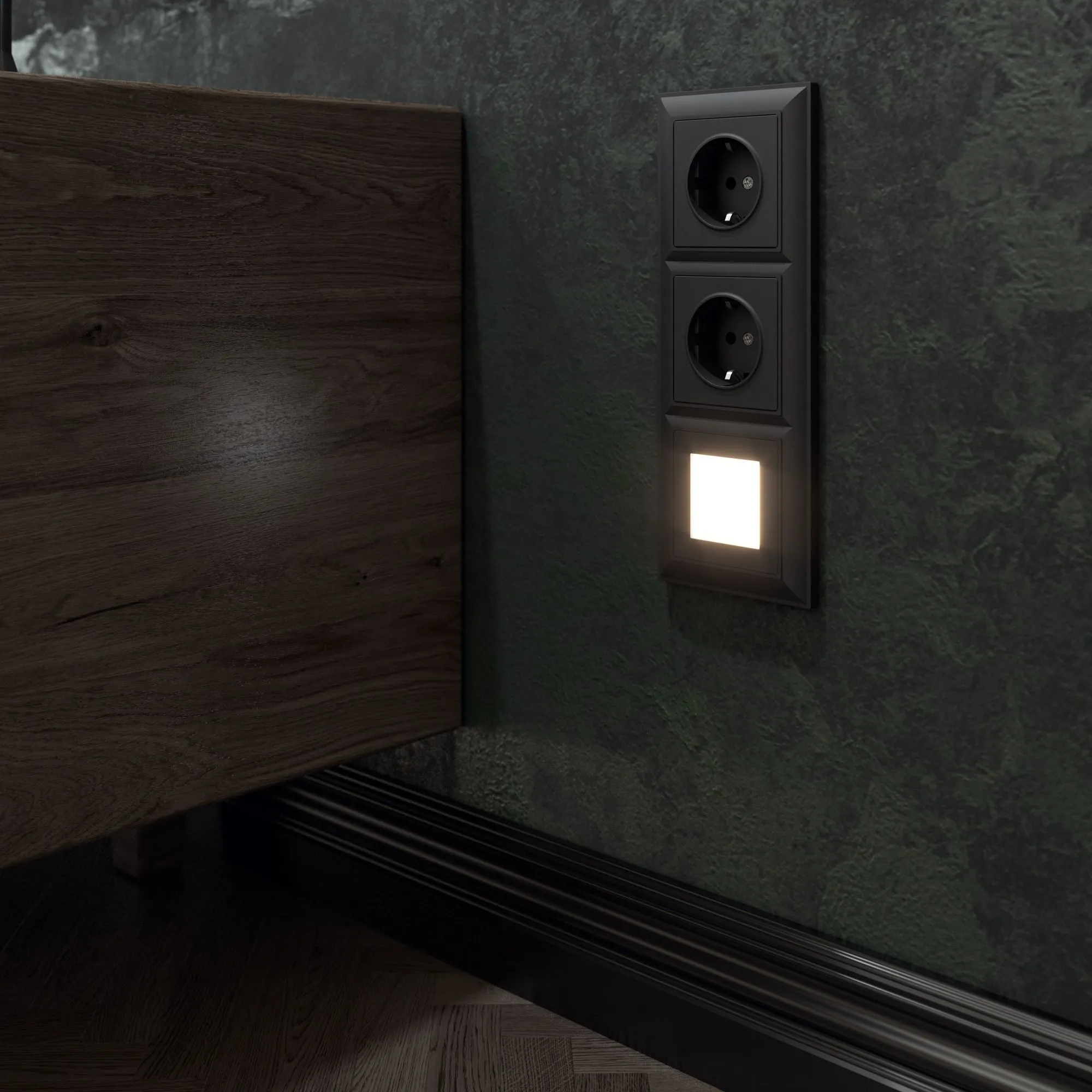 Выключатель двухклавишный с подсветкой (черный матовый) W1120108